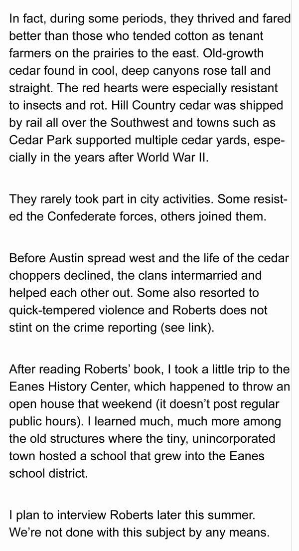 Ken Roberts studied family histories and perspectives of the Hill Country community known as the cedar choppers